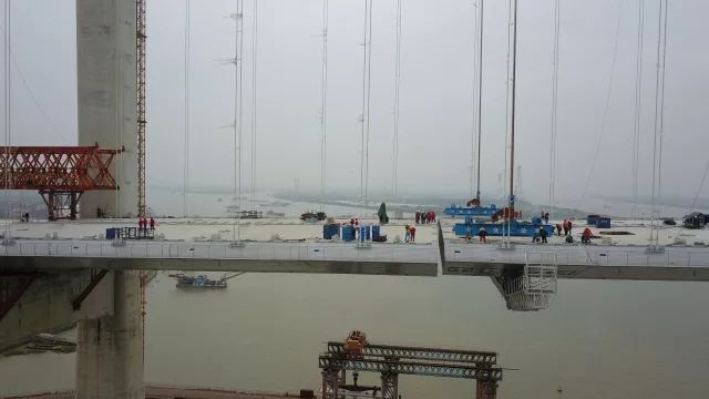 近日,通聯(lián)科技600噸跨纜吊機(jī)成功完成虎門二橋世界最寬鋼箱梁吊裝,虎門二橋大沙水道大橋勝利合龍?;㈤T二橋位于珠三角核心區(qū)域,連接珠江口東西兩岸的廣州南沙和東莞沙田,由兩座千米級(jí)懸索橋組成。其中,大沙水道橋?yàn)橹骺鐝?200米的雙塔單跨懸索橋,大橋主塔高191米;...
